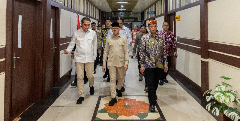 Menteri P2MI, Mukhtarudin, bersama dengan Rektor UPR, Salampak, saat menuju lokasi kuliah umum di Aula Rahan UPR, Jumat (28/11/2025). Foto Istimewa