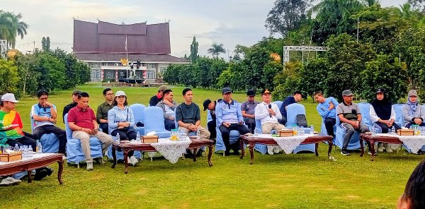 Gubernur Kalteng, Agustiar Sabran, berbicara mengenai bantuan biaya pengobatan untuk warga tidak mampu di halaman Istana Isen Mulang, Palangka Raya, Sabtu (31/1/2026). Foto Wiyandri