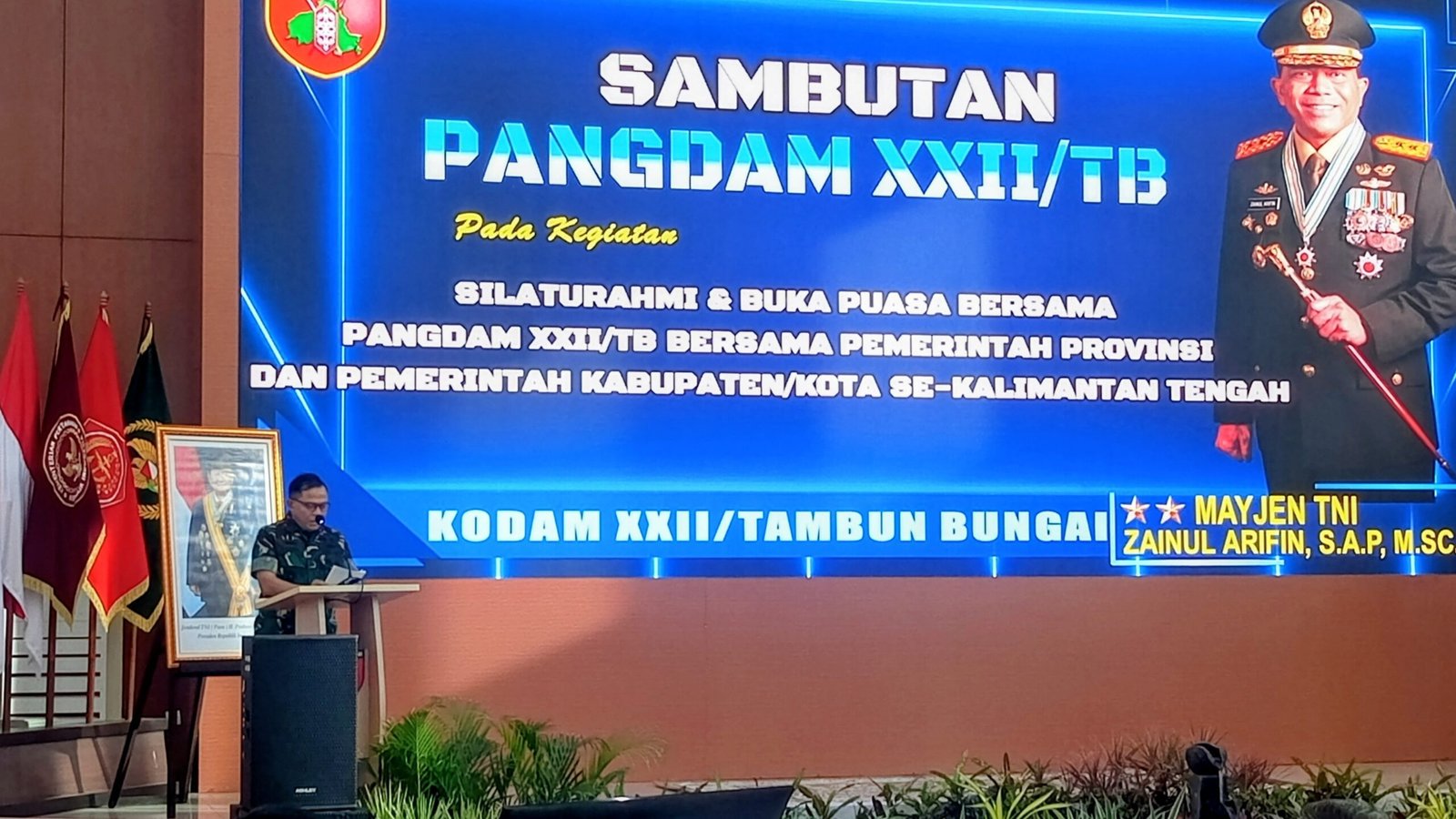 Mayjen TNI Zainul Arifin menyampaikan sambutan pada acara silaturahmi dan buka puasa bersama Komando Daerah Militer XXII/Tambun Bungai, Selasa (3/3/2026).