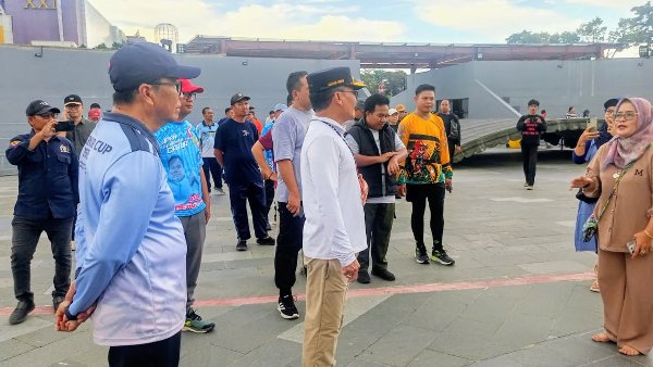 Gubernur Kalteng, Agustiar Sabran, berolahraga bersama wartawan di kawasan Bundaran Besar, Palangka Raya, Sabtu (31/1/2026). Foto Wiyandri