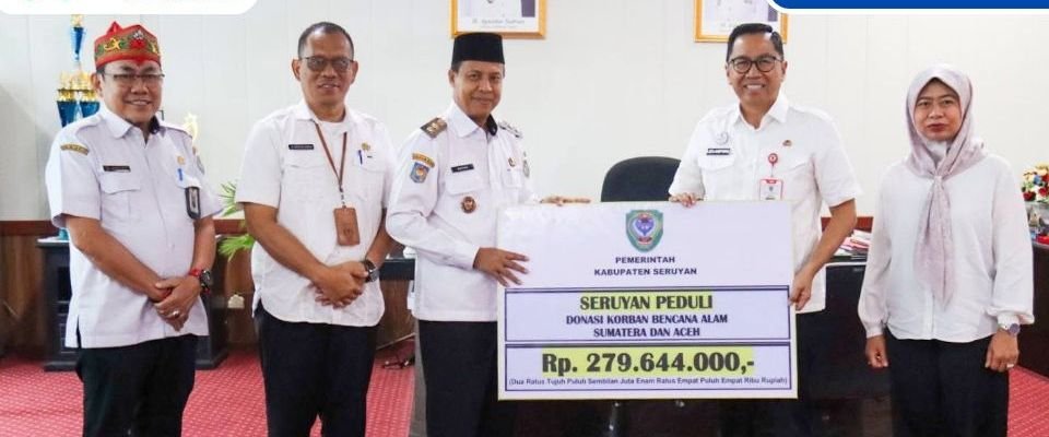 DONASI – Wakil Bupati Seruyan Supian menyerahkan donasi sebesar Rp279.644.000 kepada Plt. Sekretaris Daerah Provinsi Kalimantan Tengah Leonard S. Ampung di Palangka Raya, Rabu (4/2/2026), sebagai bentuk kepedulian terhadap korban bencana alam di Sumatra. Foto : Istimewa