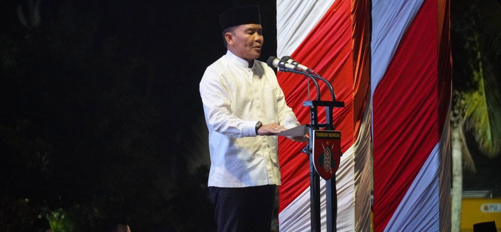 Gubernur Kalteng Agustiar Sabran menyampaikan kata sambutan pada peringatan Maulid Nabi Muhammad SAW 1447 Hijriah di halaman Markas Kodam XXII/Tambun Bungai, Senin (22/9/2025) malam. Foto Istimewa