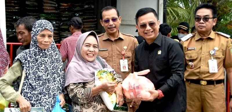 PASAR MURAH – Ketua Komisi II DPRD Barito Utara H. Taufik Nugraha menghadiri pelaksanaan operasi pasar murah di Muara Teweh. Foto : istimewa